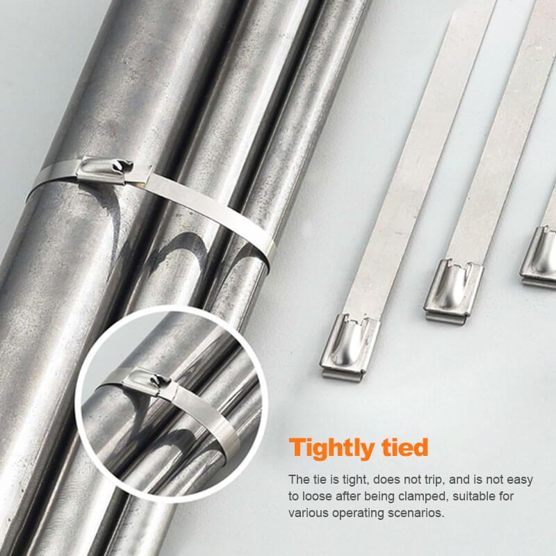 These locking tie wraps are designed with a thickened buckle to reinforce the tie. In addition, the buckle contains stainless steel balls to keep ties from loosing after being clamped. Last but not least, you completely don't need any tools to install them, as easily as a zipper.