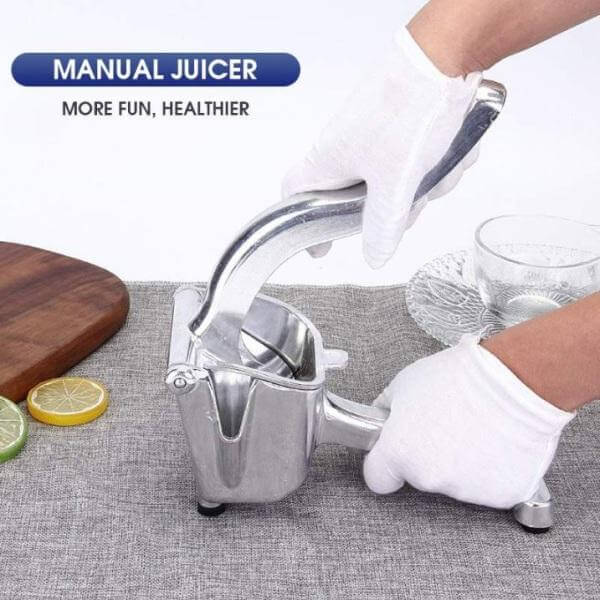 Efficiency: When using the Manual Hand Press Juicer to juice your favorite fruits, it will squeeze out maximum amount of juice from the fruit. This is an essential gadget for your daily cleansing juice or even weekend mix drink.